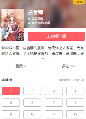 简介:《占骨师》漫画:古有善占骨之人,识天机,洞人心,以其骨又可占亡魂之意,故称——占骨师。占卜,卜过去卜未来,卜爱情卜事业,只卜活人;占骨,卜前生,卜生后,卜未完的遗愿,只卜亡魂。问题越多收取的报酬就越丰厚,而占骨师收的报酬是人的寿命。茶音就是靠这些寿命,活了整整一千年,且维持着十八岁的模样。